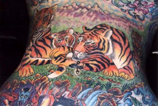 Japanese tattoos are traditionally large and this body suit is typical of a